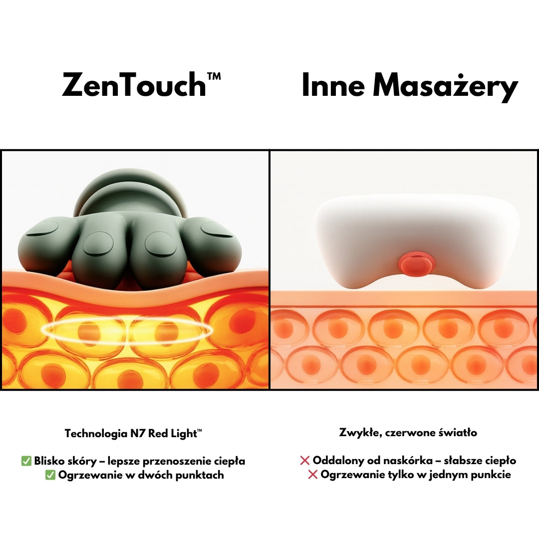 ZenTouch™ 4D to inteligentny, bioniczny masażer, który rozluźnia napięte mięśnie, łagodzi stres i zapewnia głęboki relaks zawsze wtedy, gdy go potrzebujesz.
